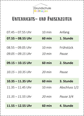 Unterrichts- und Pausenzeiten