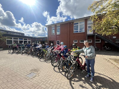 Am 12. September 2023 war es wieder soweit: 14 aufgeregte Pausenengel standen startbereit mit ihren Fahrrädern vor unserer Schule. Wir starteten mit unseren Fahrrädern Richtung Lasbek, wo wir in den Räumen der „Alten Schule“ unseren Arbeitsausflug gestalten konnten - das ist eine schöne Tradition geworden.
