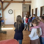 Nach einem gemütlichen Mittagessen und einer kleinen Pause mit einem Spiel ging es schnell in die Arbeitsphase über. Zunächst gab es kurze Einheiten zur Wiederholung wichtiger Inhalte, danach folgten diverse Rollenspiele. In den Rollenspielen lernten die angehenden Pausenengel typische Pausenhofsituationen kennen. Hier konnten sie trainieren, wie sie in den unterschiedlichen Situationen helfen, unterstützen und trösten können.